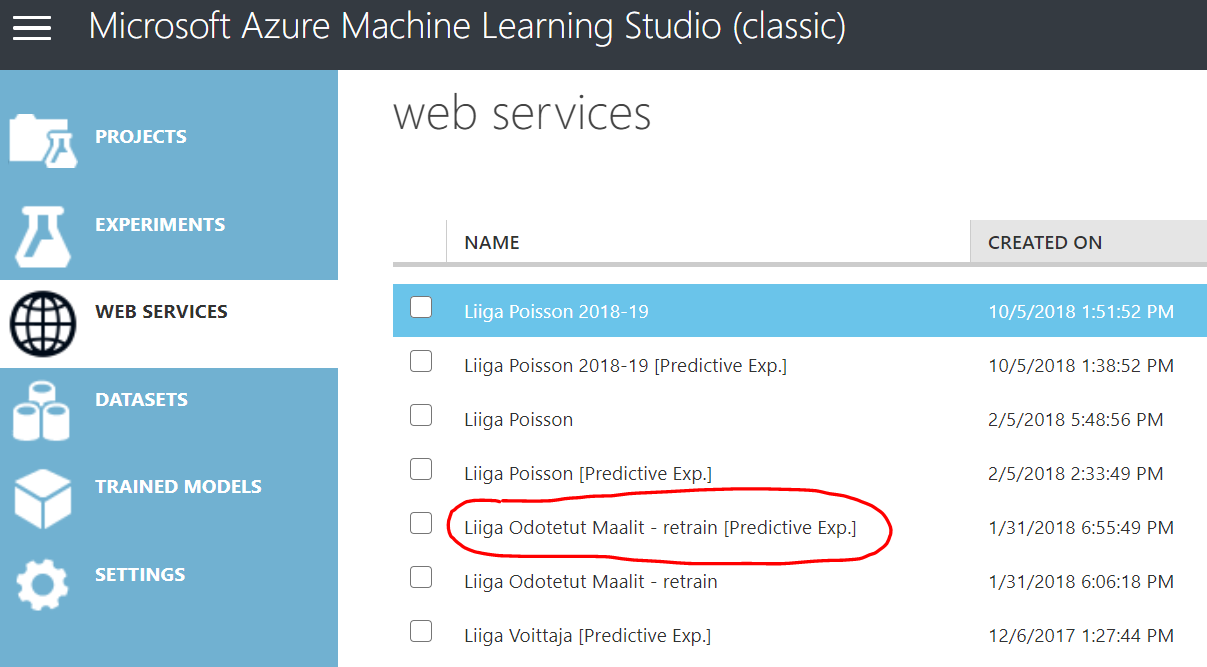 My previously created Azure Machine Learning retraining and scoring model created with Azure Logic App and PowerBI (here is more info https://www.kruth.fi/uncategorized/azure-machine-learning-retrain-running-r-scripts-with-power-bi-and-some-dax/) stopped working last January. I didn’t have enough motivation until now to start digging to find out what was wrong. Reason revealed to be removed component from Azure Logic App – namely Azure ML component. It just doesn’t exists any more.