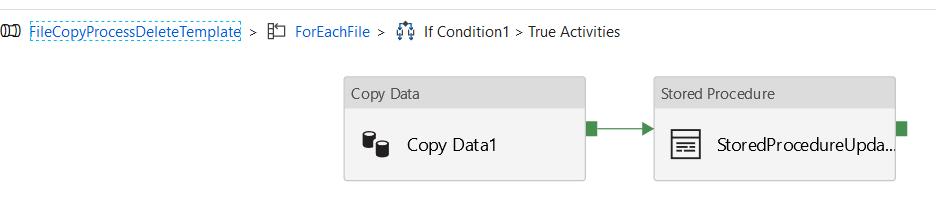 First one copies the files and next one deletes the file. Copying could be done in one batch, because I copy all the files from source container. Deletion of the files has to be one by one. It is in the separate pipeline, because “If Condition” can’t contain “For Each” activity. Separate pipeline is a workaround for that.